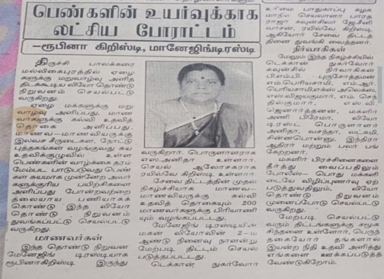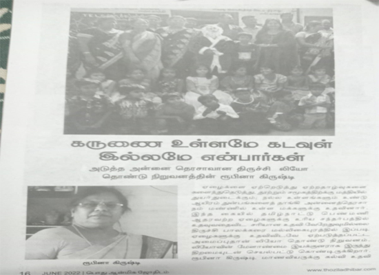 மாநில பொறுப்பாளர் : ருபின கிறிஸ்டி (Trustee of Leo For Poor People)